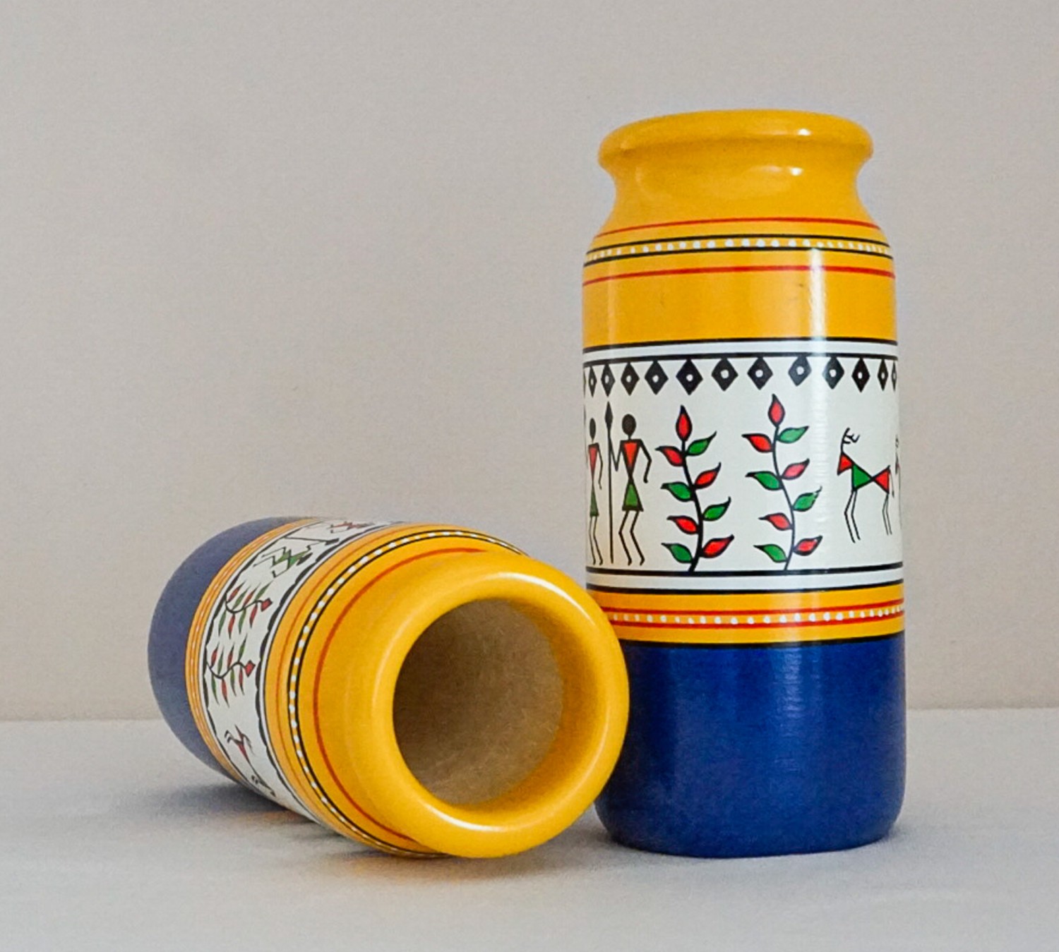 Channapatna Wooden - Colourful Art Work Flower Vase (L=20CM,W=9CM)